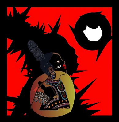 Presented in the artwork is a Kinara which is a seven-space candle holder used during Kwanzaa.
